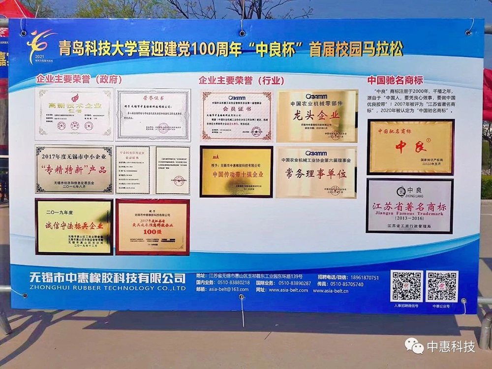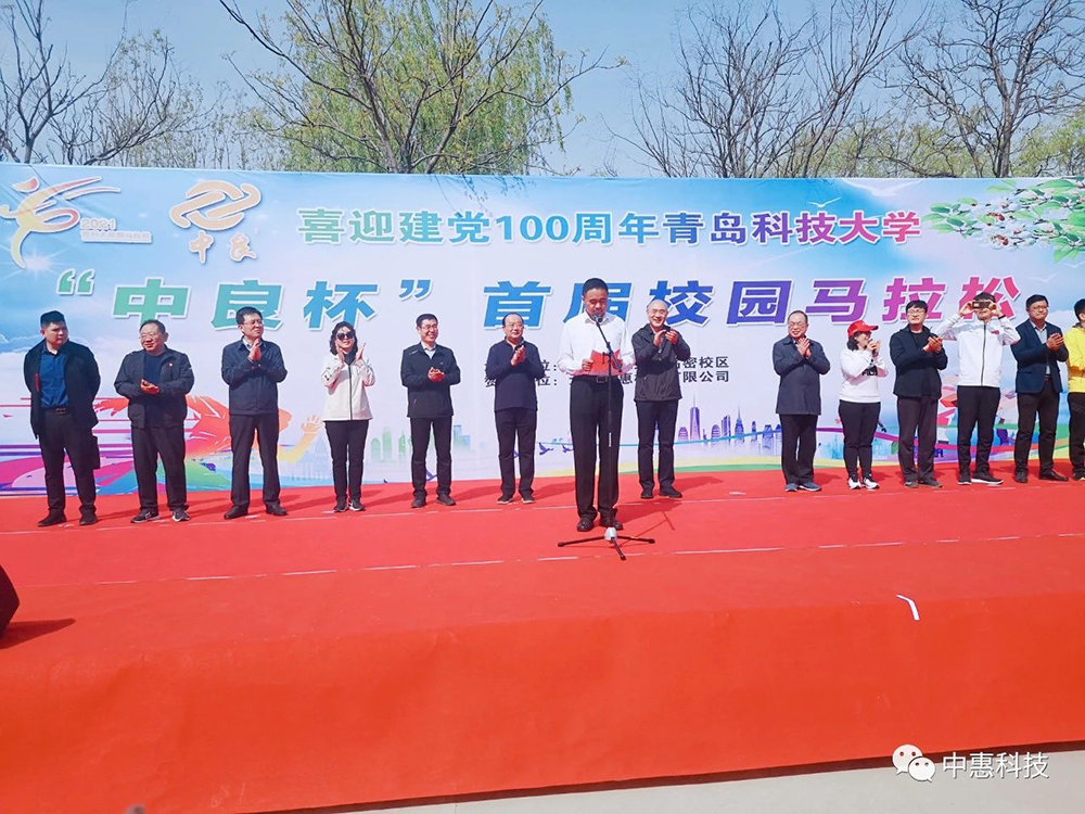 2021年4月20日,喜迎建党100周年,青岛科技大学“中良杯”首届校园马拉松活动,在阳光和煦的早晨顺利拉开序幕。作为青岛科技大学的校友,无锡市中惠橡胶科技有限公司总经理朱树生为表对母校体育事业发展的关心与支持,赞助了本次体育活动,并应邀参加了本届校园马拉松的开幕仪式。